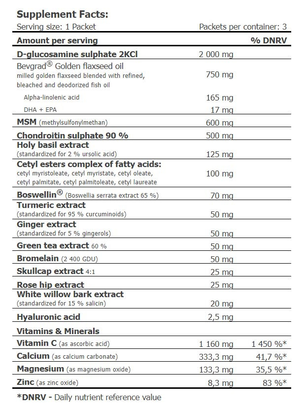 Glükózamin, kondroitin, MSM, kollagén, hialuronsav és vitaminok – minden ízületi tápanyag egy csomagban.