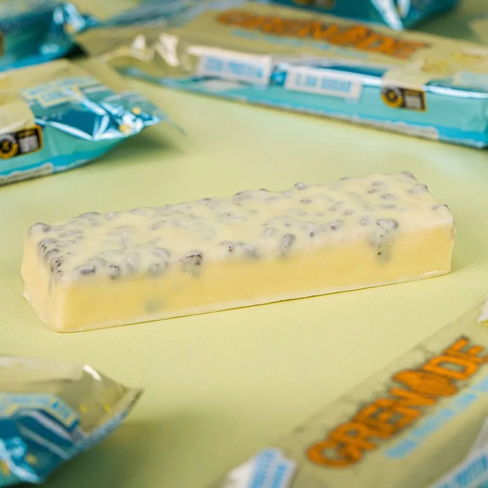 Fehérjekeverék ( tejfehérje , tejsavófehérje ( tej ), kalcium-kazeinát ( tej )), fehér csokoládé édesítőszerrel (20%) (édesítőszer: maltit; kakaóvaj, teljes tejpor , emulgeálószer: szójalecitin ; természetes ízesítő ), Édesítőszerek: maltit, szukralóz; Szarvasmarha kollagén hidrolizátum, nedvesítőszer: glicerin; Tömegnövelő szer: polidextróz; Szójafehérje , szójakakaó chips ( szójafehérje , zsírszegény kakaópor, tápióka keményítő), szójaolaj , napraforgóolaj, ízesítők ( tej ), kálium-klorid, kakaóvaj, teljes tejpor, emulgeálószerek: citromsav-észter, szójalecitin ; Krémpor ( tej ), szín: kalcium-karbonát; Vanília.