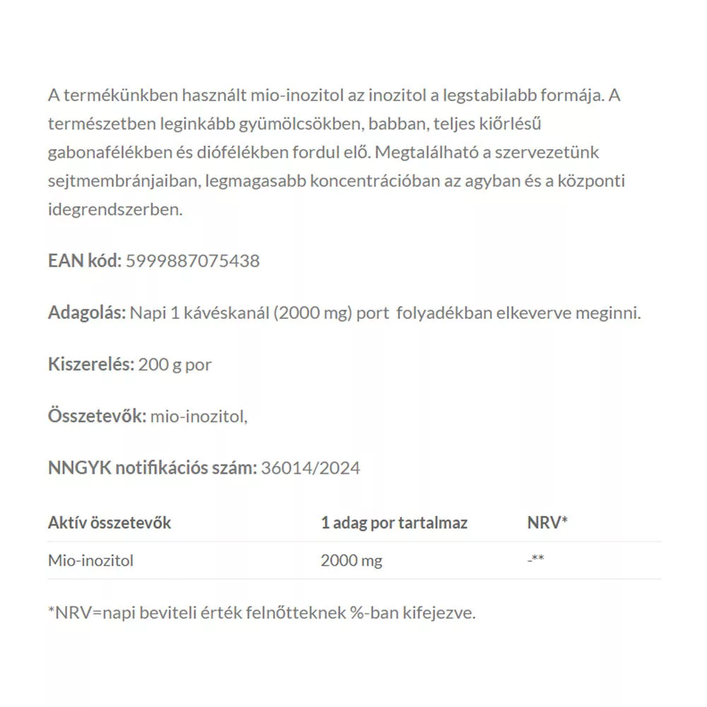 A JutaVit Mio-Inozitol Por 200 g egy tiszta mio-inozitol port tartalmaz - az inozitol legjobban felszívódó, legstabilabb formáját. Az inozitol (B8-vitamin) a sejtek közötti jelátvitel, az agyi neurotranszmitterek és az inzulinérzékenység kulcsmolekula. A por forma rugalmas adagolást tesz lehetővé, és könnyen oldódik vízben vagy italban. Különösen nőknél vizsgált a PCOS-kezelésben és hormonegyensúlyban való szerepe.