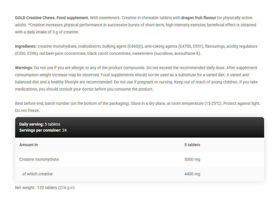 Kevin Levrone Gold Line Creatine Chews 120 Tabletta