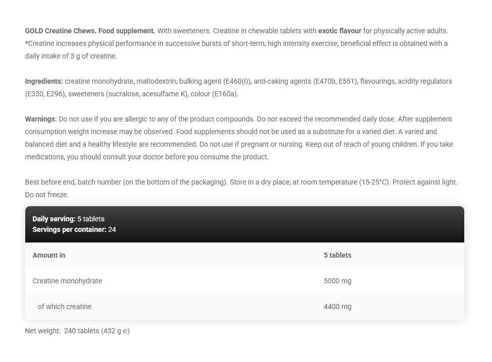 Kevin Levrone Gold Line Creatine Chews 240 Tabletta