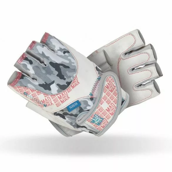 A fehér színű alap rózsaszín Madmax felirattal, terepmintázattal és kék-piros varrással kiegészítve egyedi stílust biztosít.