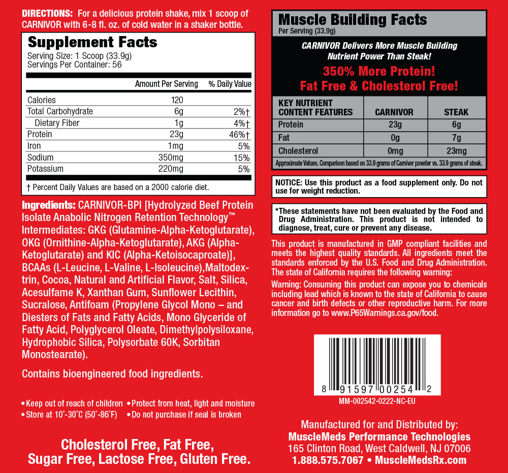 MuscleMeds Carnivor™ - Hidrolizált Marhafehérje 56 Adag 1898 g