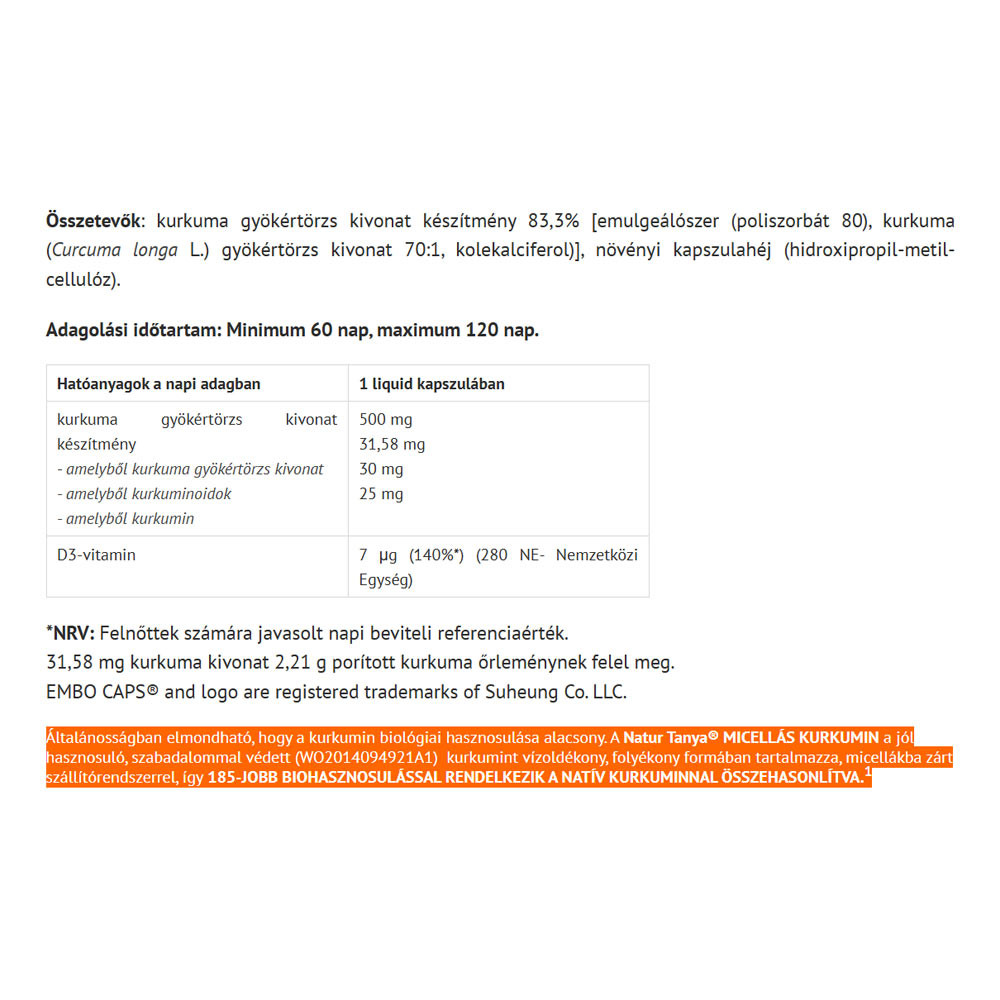 Natur Tanya Micellás Kurkuma 50 Lágykapszula