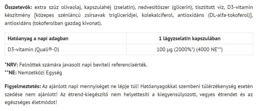 Natur Tanya Oliva D3-Vitamin - 4000 NE 50 Lágykapszula