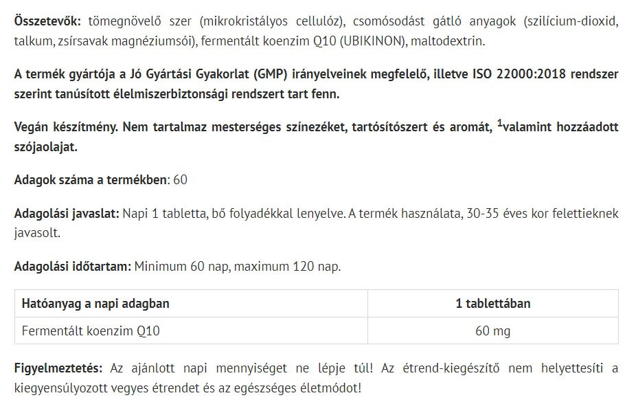 Natur Tanya Szerves Koenzim Q10 60 Tabletta