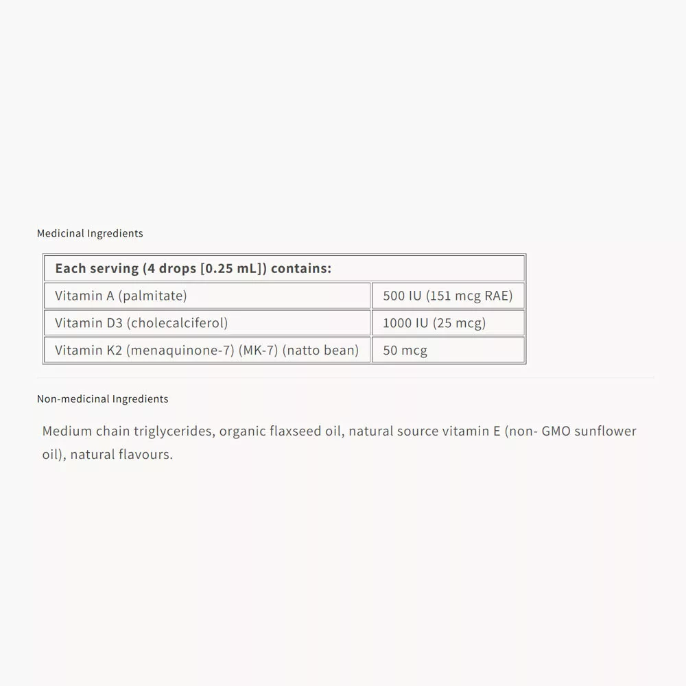 Natural Factors K2+D3+A 50 mcg/1000 NE/500 NE 30 ml