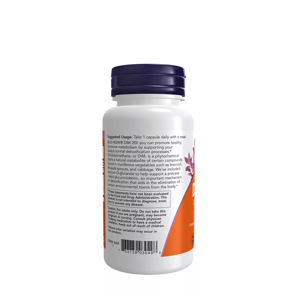 A NOW® DIM 200 segítségével elősegítheti az egészséges hormon metabolizmust azáltal, hogy támogatja a test normális méregtelenítési folyamatait. A Diindolylmethane (DIM) egy fitokémia, amely a keresztesvirágú zöldségekben található meg, mint például a brokkoli, a kelbimbó és a káposzta. Hatóanyagaként a formula része a Calcium D-Glucarate, amely a glükuronidációnak nevezett folyamat támogatása érdekében, a méregtelenítés fontos mechanizmusa, amely elősegíti bizonyos környezeti méreganyagok eltávolítását a testből.
