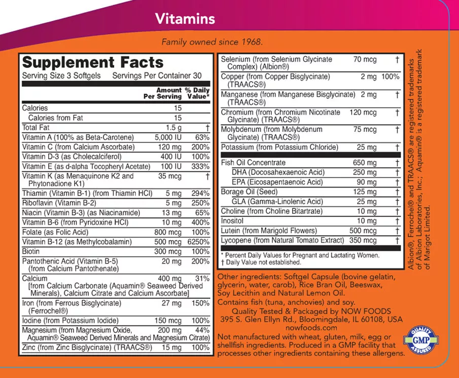 Now Foods Terhesvitamin + DHA kapszula - Prenatal Gels + DHA 90 Lágykapszula
