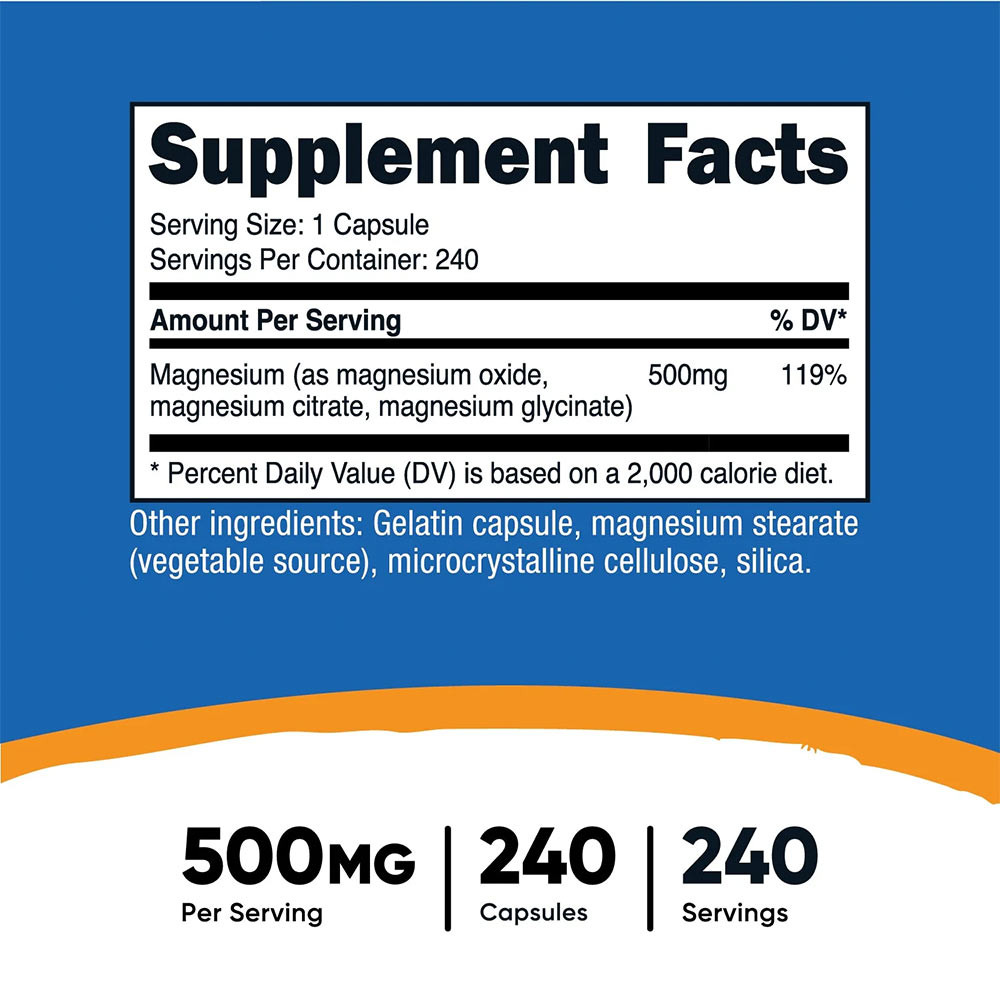 - 500 mg magnézium adagonként magnézium-oxidból, magnézium-citrátból és magnézium-glicinátból