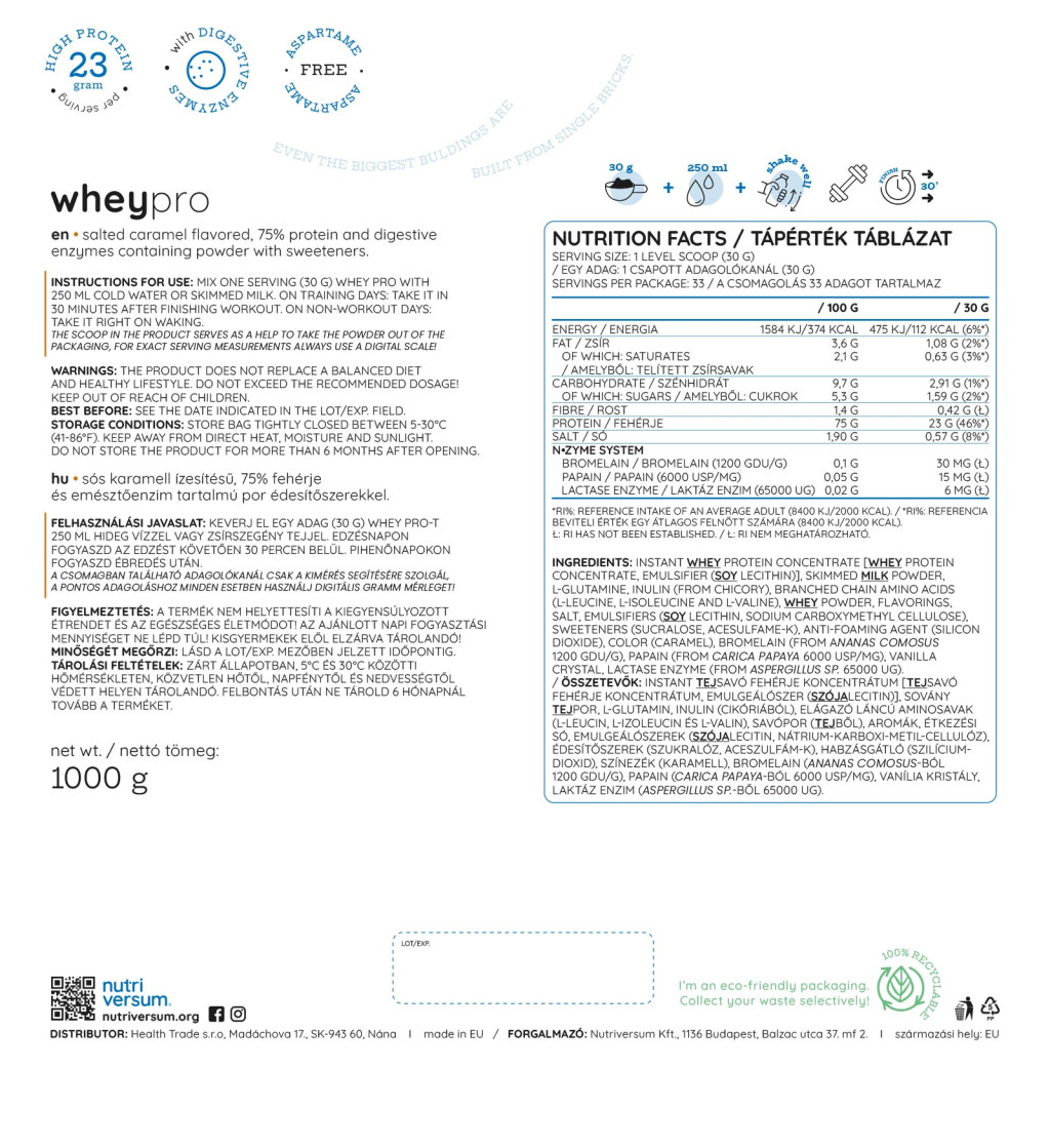 Nutriversum Whey PRO - Tejsavó Fehérje - PURE 1000 g