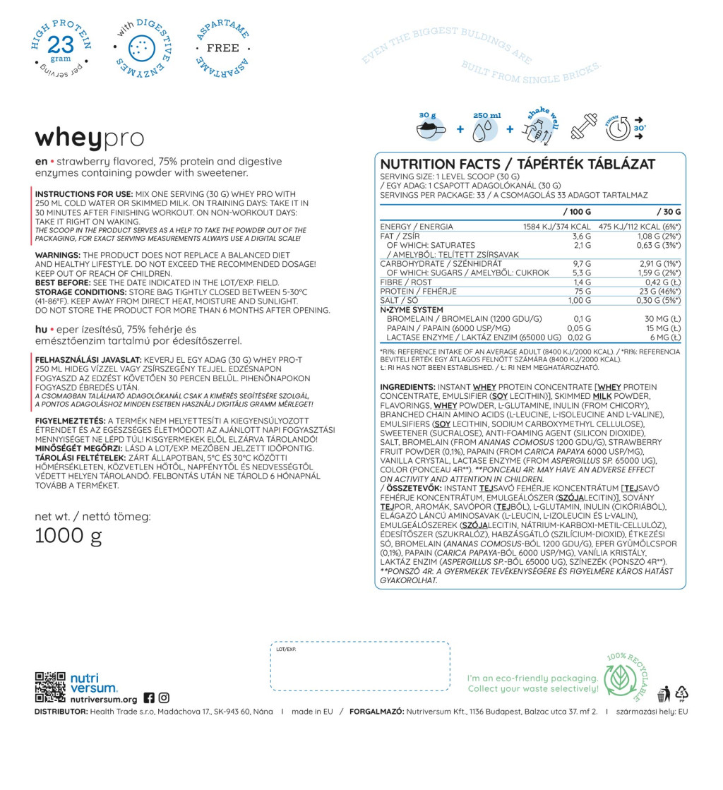 Nutriversum Whey PRO - Tejsavó Fehérje - PURE 1000 g