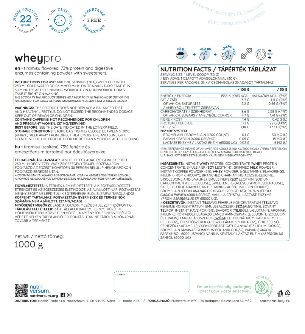 Nutriversum Whey PRO - Tejsavó Fehérje - PURE 1000 g