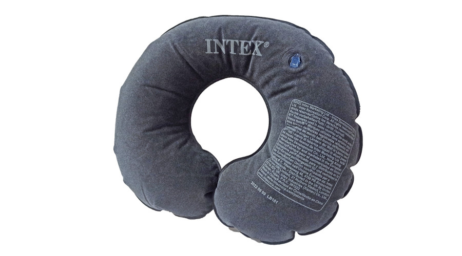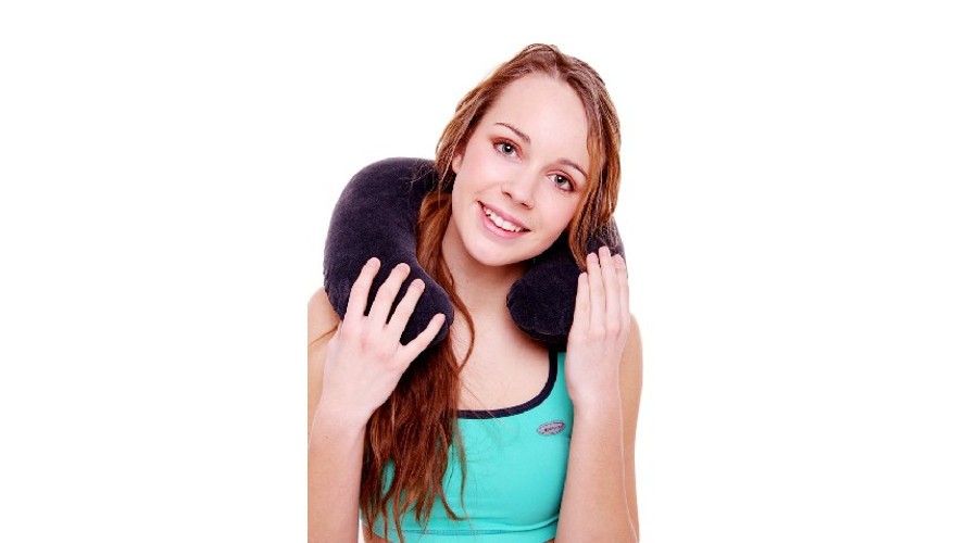 Felfújható nyakpárna, velúr bevonattal, szürke színben. Mérete: 36×30×10 cm.