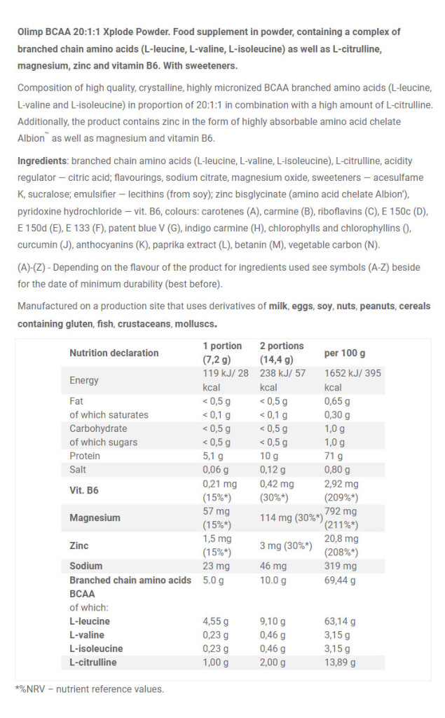 Olimp Sport BCAA 20:1:1 Xplode Por 500 g