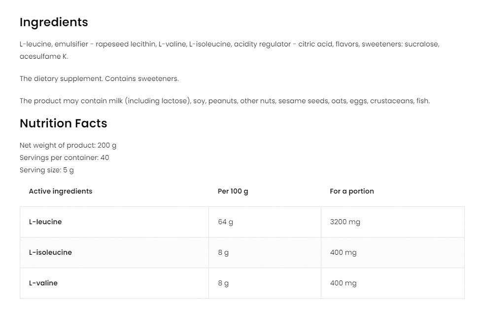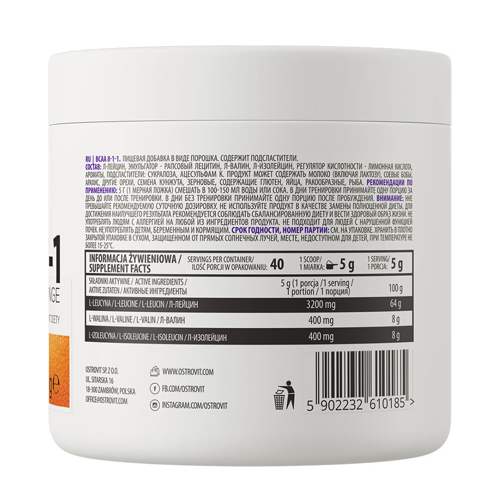 Az OstroVit BCAA 8-1-1 egy csúcsminőségű készítmény a fizikailag aktív emberek számára, amely csak három elágazó láncú aminosavból, leucinból, valinból és izoleucinból áll. A termék mikronizáltsága a legmagasabb szintű. A termék ideális biológiai hozzáférhetőségét és magas oldhatóságát a fogyasztók magas igényei diktálták.