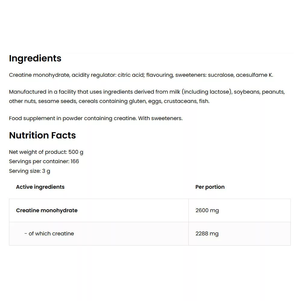 - A kreatin forrása - Az étrend-kiegészítő egy adagja 2600 mg kreatin-monohidrátot biztosít a szervezet számára.