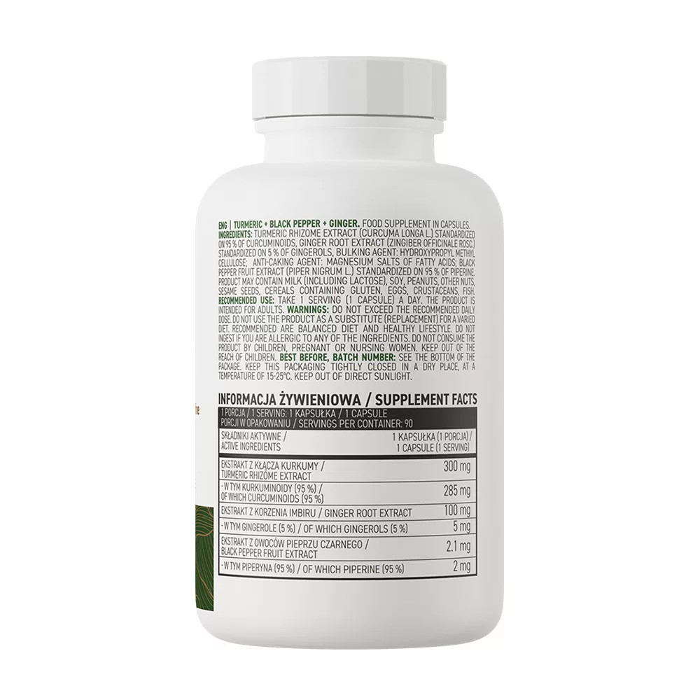OstroVit Turmeric + Black Pepper + Ginger - Kurkuma+Fekete bors+Gyömbér 90 Kapszula