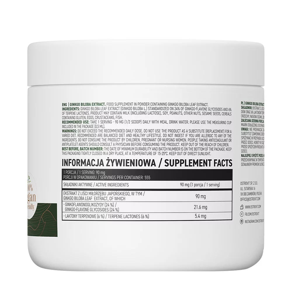 OstroVit Vegán Ginkgo Biloba Kivonat 50 g