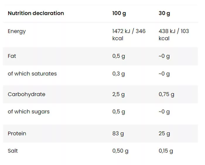 A legtisztább tejsavófehérje-izolátum port tartalmazó formula magas fehérjetartalmú italok készítéséhez. Intenzív sportolók számára készült, akik az izomtömeg növekedésére és fenntartására törekszenek. Ezenkívül támogatja a szervezetet az erős és egészséges csontozat fenntartásában.