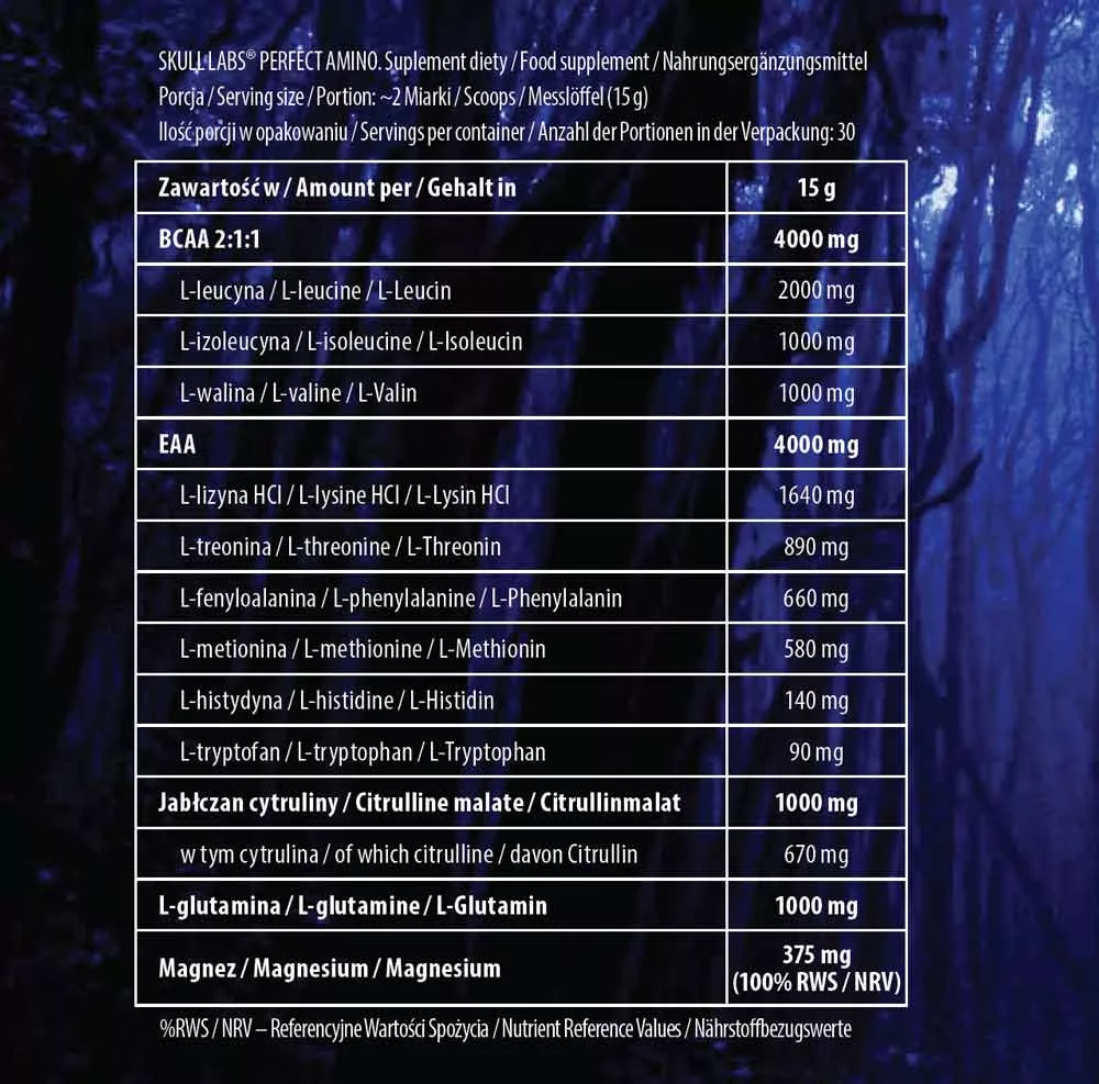 - BCAA-t, EAA-t, L-glutamint, citrullint és magnéziumot tartalmaz