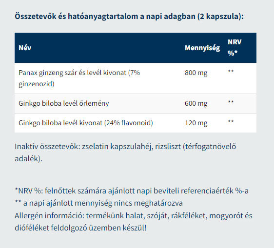 Az USA medical Ginkgo biloba 800 mg vörös Panax Ginzeng kivonatot tartalmaz 1 napi adagban.