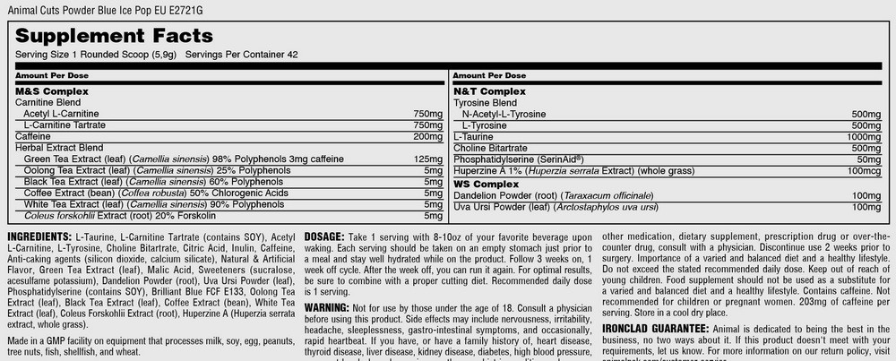 Universal Nutrition Animal Cuts Powder - Komplex Zsírégető Por 248 g