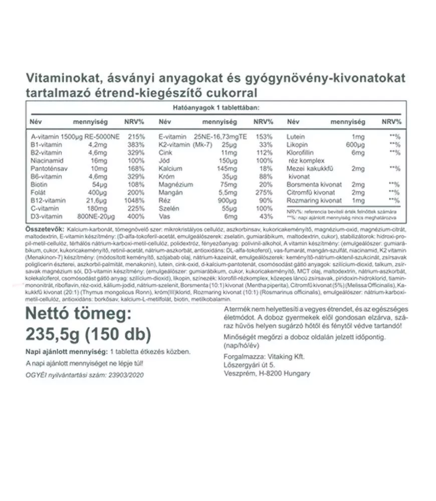 Vitaking Daily One Multivitamin 150 Tabletta