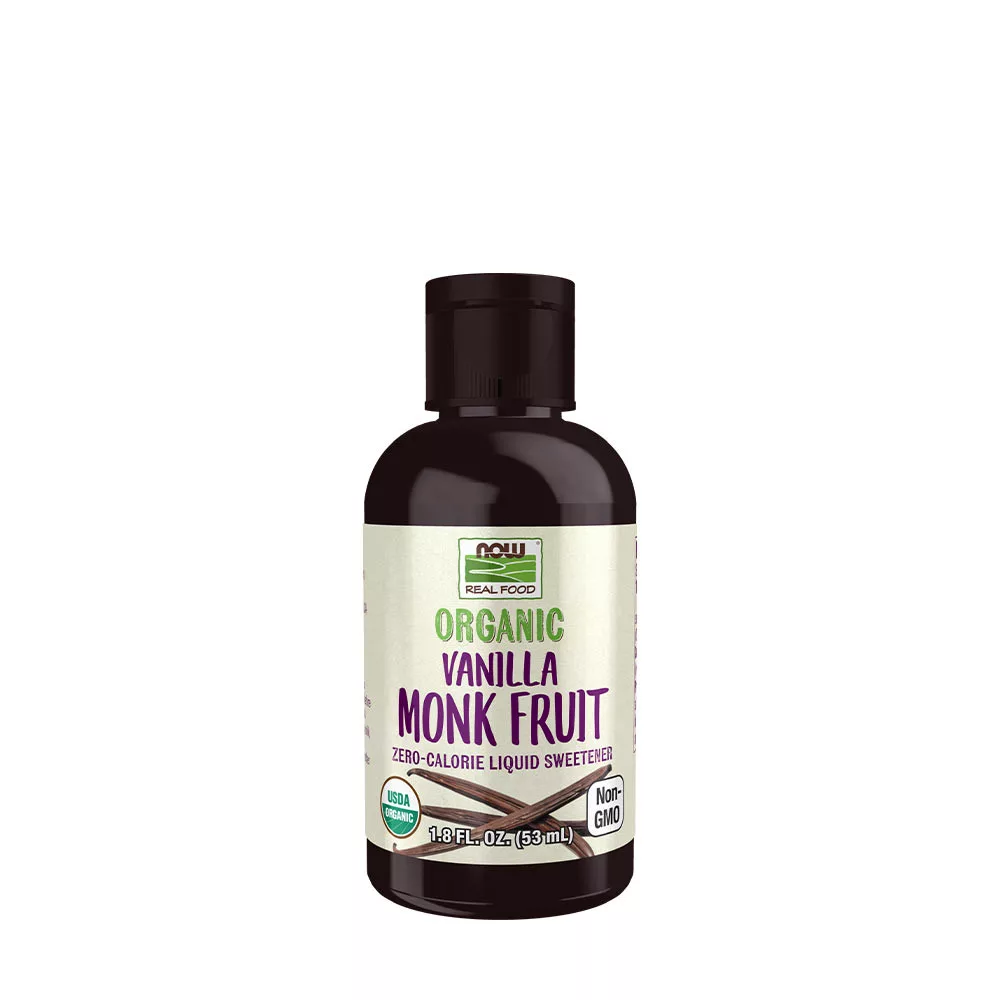 NOW Real Food® Organic Monk Fruit Liquid kellemesen élénk, édes ízű ital, nagyon kevés utóízzel.
