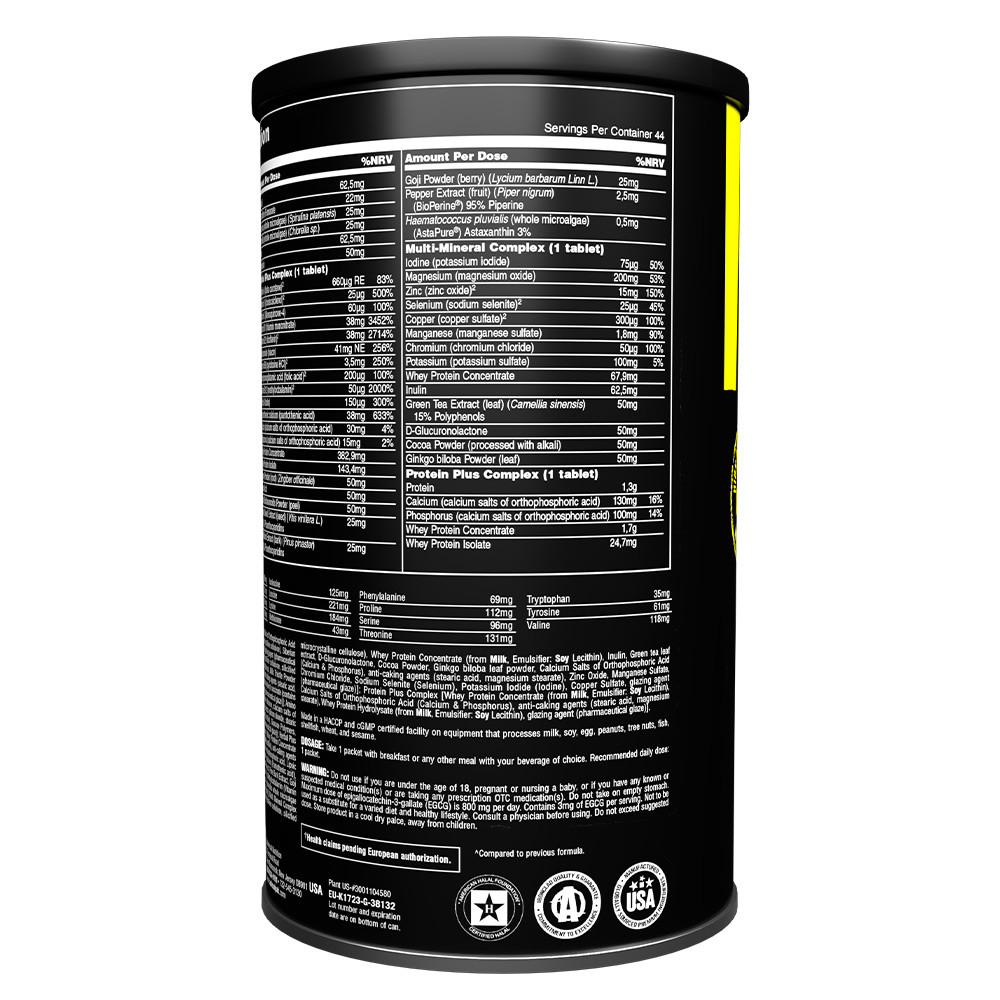 Az Animal Pak egy teljes értékű táplálék, amely több mint 85 jól felszívódó tápanyaggal van megtöltve, amely a vitaminok, ásványi anyagok, aminosavak, antioxidánsok, emésztőenzimek, karnitin, gyógynövények és egyéb anyagok hatékony kombinációjával fokozza az edzéseket és növeli az energiát a mindennapi életben. Több mint egy multivitamin, az Animal Pak kitölti a tápanyaghiányt, biztosítva, hogy felkészüljön az izomnövekedésre és az optimális teljesítményre, miközben fitneszcéljait hajszolja.